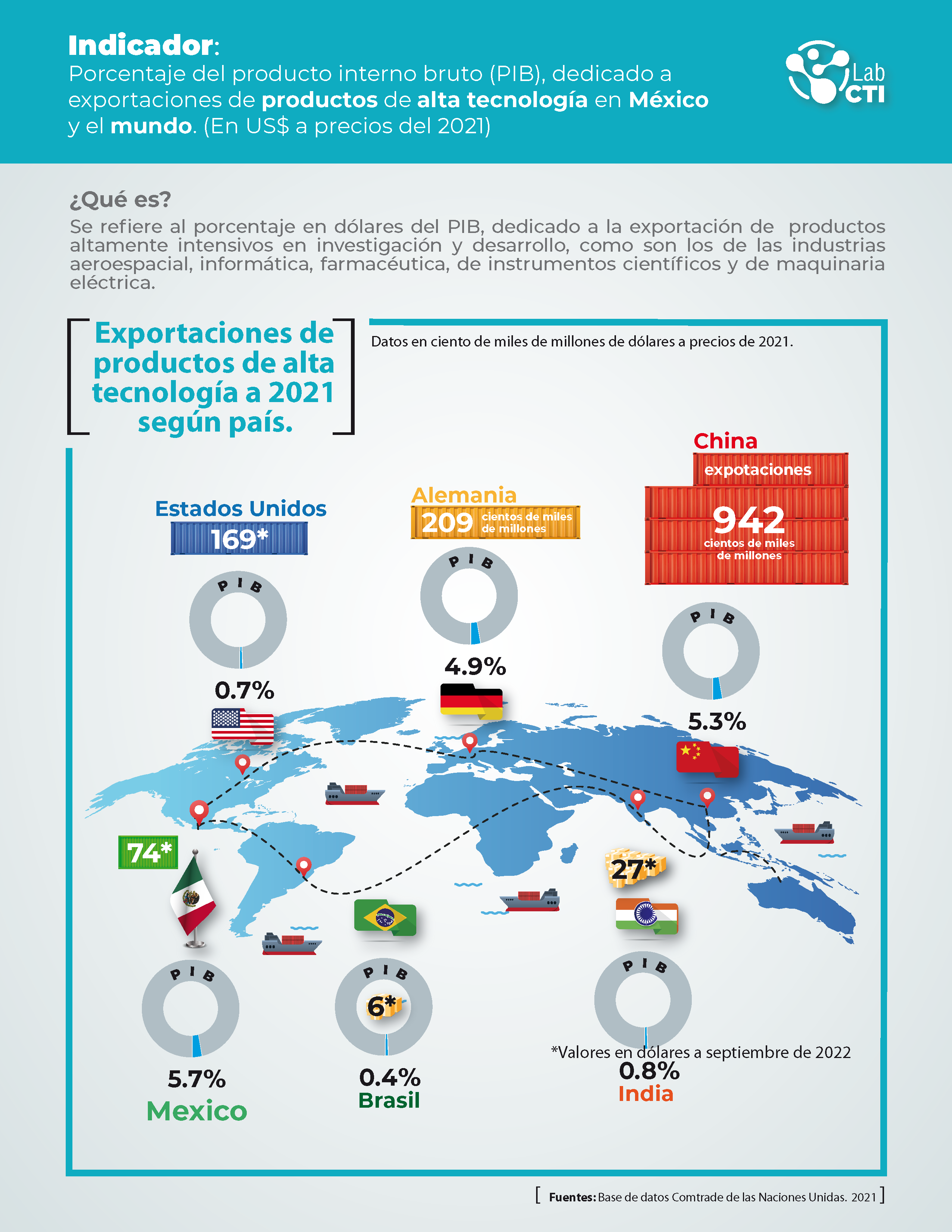 Exportaciones de productos de alta tecnología a 2021 según país.