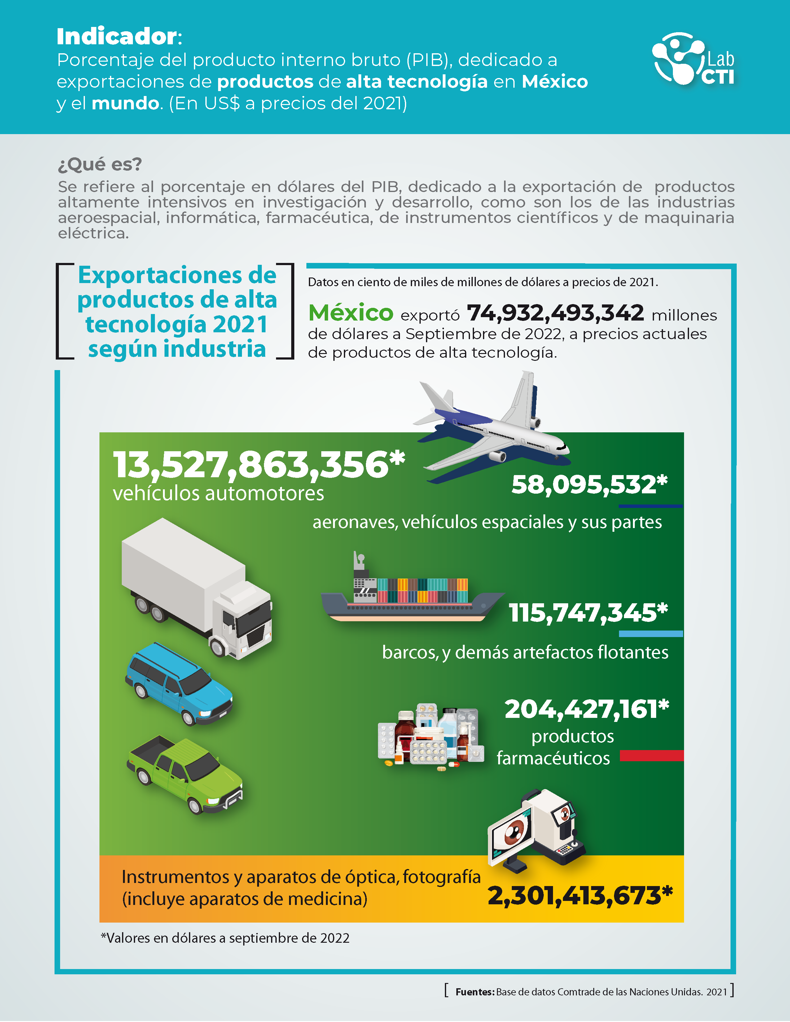 Exportaciones de productos de alta tecnología a 2021 según industria.
